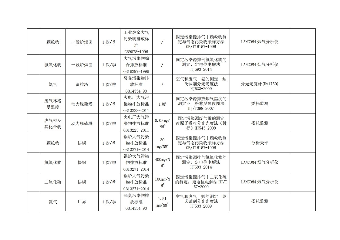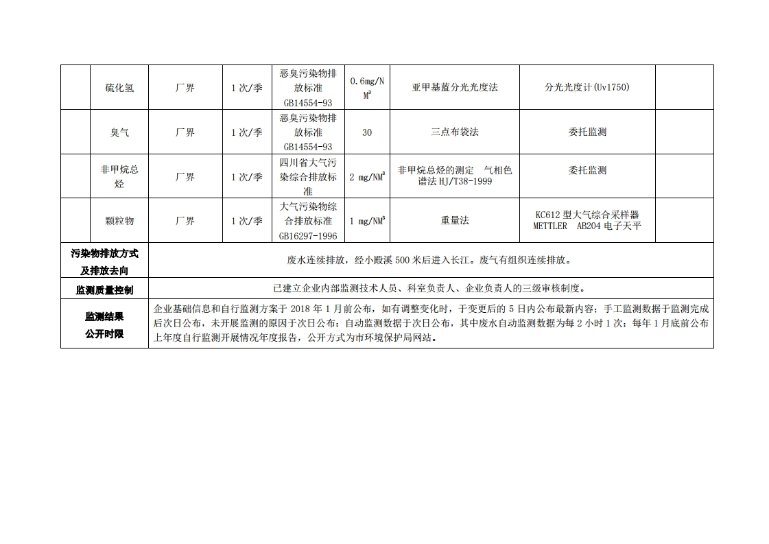 四川天華股份有限公司2018年自行監(jiān)測(cè)方案