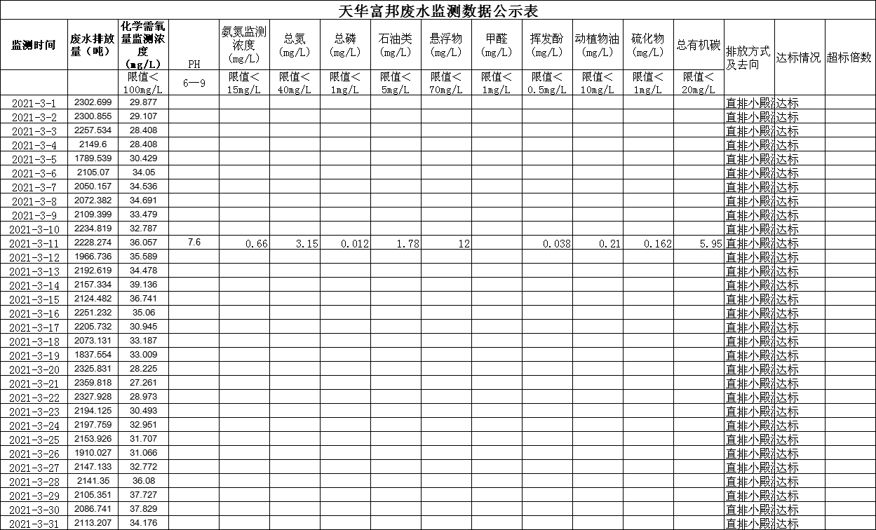 四川天華富邦有限責(zé)任公司3月廢水監(jiān)測(cè)公示