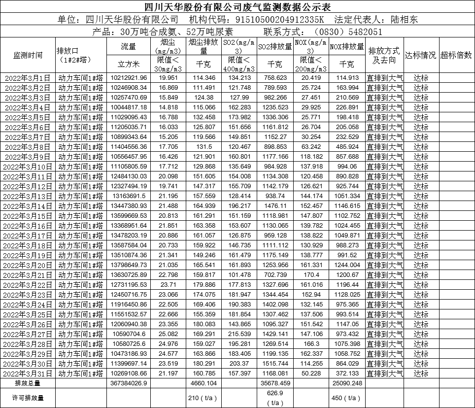四川天華股份有限公司2022年3月廢氣監(jiān)測公示