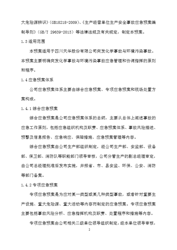 四川天華股份有限公司突發(fā)環(huán)境事件應急預案