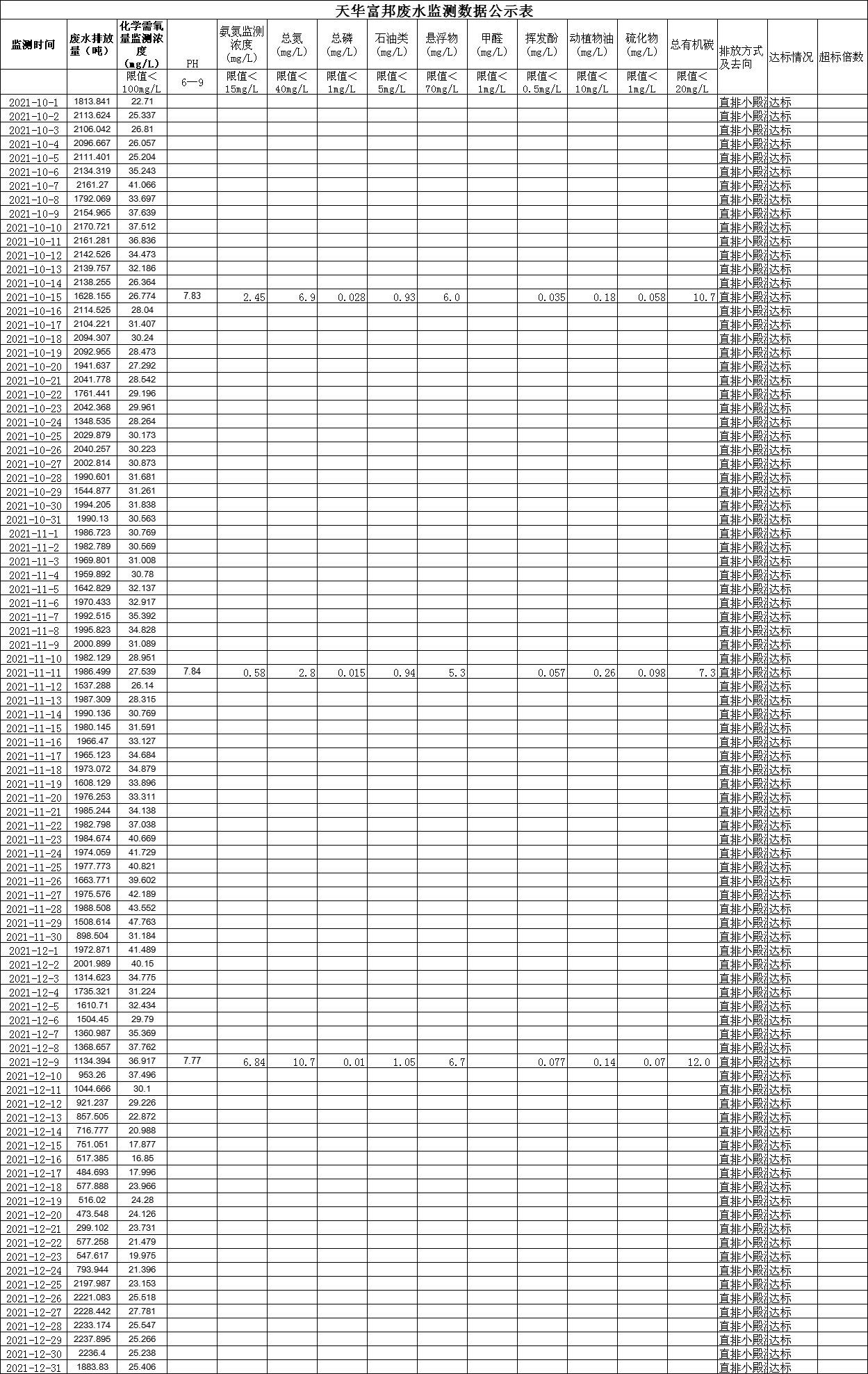 四川天華富邦有限責任公司10月11月12月廢水監(jiān)測公示