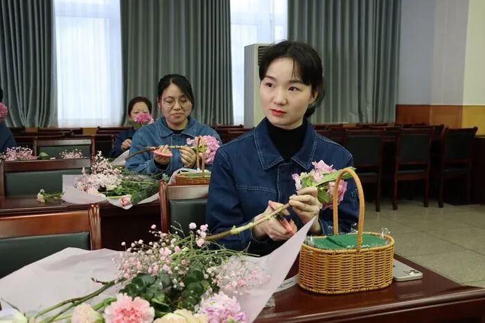 在隨后舉行的“喜迎4·18 女工綻芳華”插花藝術(shù)培訓(xùn)過程中,女職工們興致勃勃地聆聽了花藝?yán)蠋煂?duì)插花藝術(shù)、花材識(shí)別、花枝修剪和鮮花養(yǎng)護(hù)等方面的知識(shí)講解。老師講得投入,女職工聽得認(rèn)真,大家一邊聽講一邊實(shí)做,一邊構(gòu)思設(shè)計(jì)造型,一邊與周圍的同事交流。在花藝?yán)蠋煹闹笇?dǎo)下,參加培訓(xùn)的女職工發(fā)揮了自己的想象力和創(chuàng)造力,把當(dāng)場學(xué)到的知識(shí)融入到自己的插花作品中,形成了一個(gè)個(gè)獨(dú)具匠心且充滿韻意的插花作品,讓大家感受到了插花藝術(shù)的魅力。培訓(xùn)結(jié)束后,水處理車間職工莫云說,參加這次插花藝術(shù)培訓(xùn)不但陶冶了情操,還提高了自己的精神文化素質(zhì)和藝術(shù)修養(yǎng),非常感謝公司的精心安排,也希望今后能有更多的機(jī)會(huì)參加這樣的培訓(xùn)。
