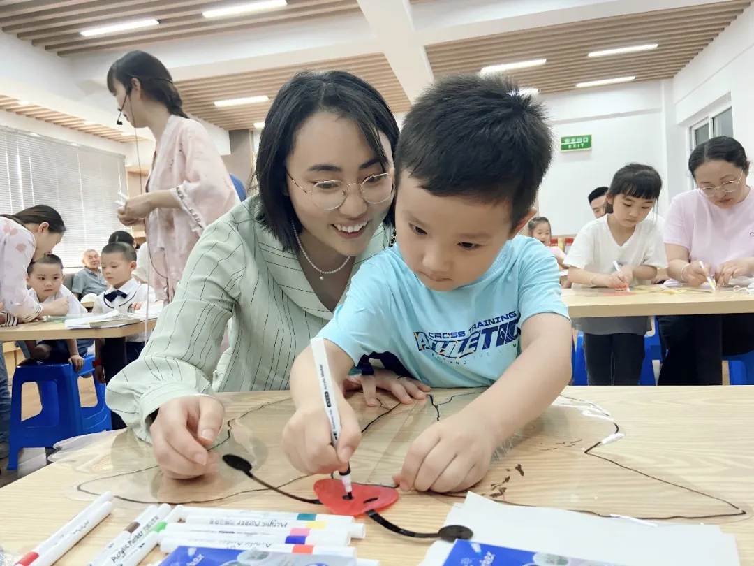 此次活動集團邀請了經驗豐富的木木老師,為孩子們講解顏色搭配、勾描方法等描繪技巧。在老師和家長的指導和幫助下,孩子們挑選喜愛的顏色,全神貫注地繪畫,不時跟家長交流心得。